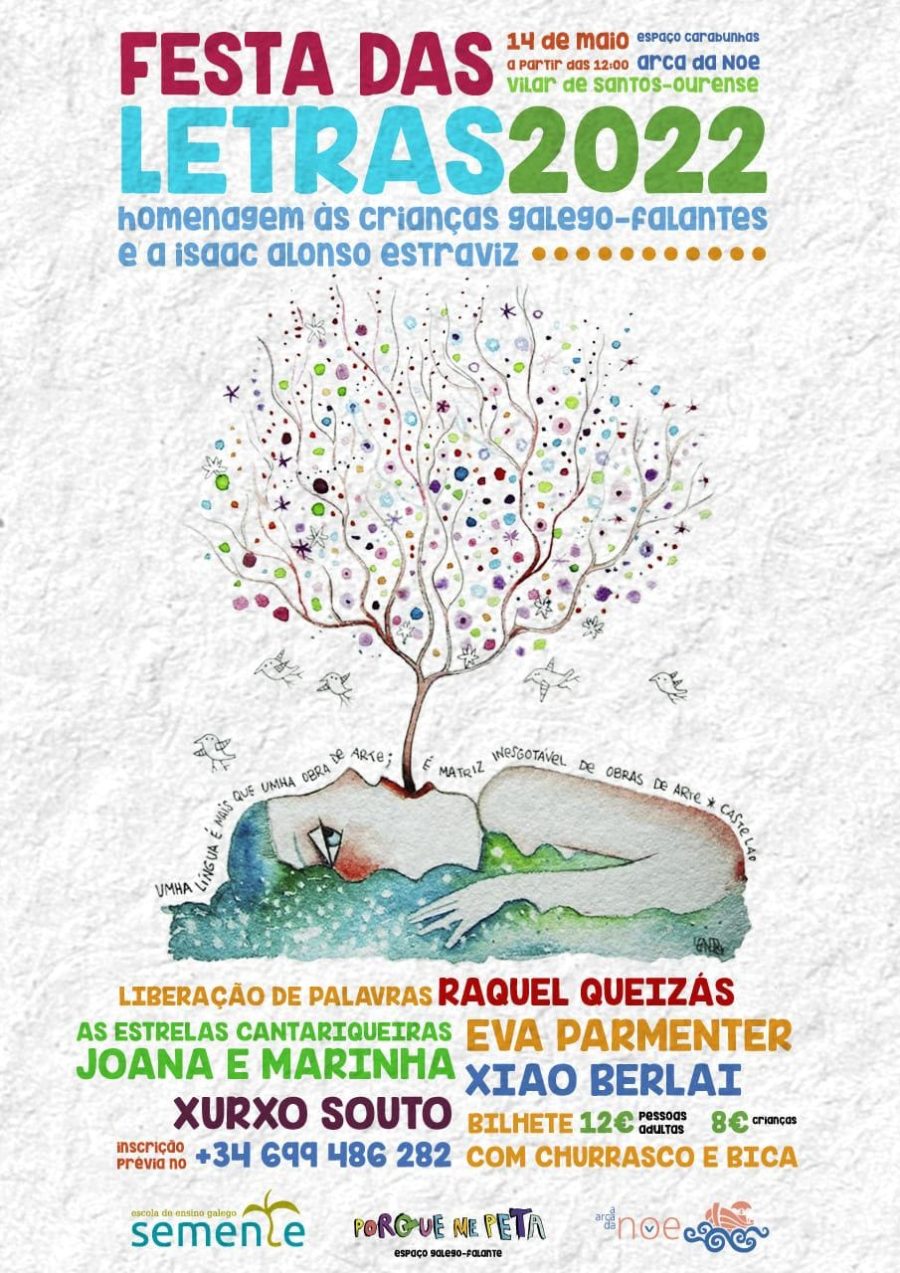 Sábado 14 de maio às 12:00, decorrerá no espaço Carabunhas da Arca da Noe, a homenagem partilhada ao lexicógrafo Isaac Alonso Estraviz e às crianças galego-falantes num programa alargado para comemorarmos a Festa das Letras 2022. Contará também com a participaçom da Raquel Queizás, Eva Parmenter, Joana e Marinha, Xiao Berlai e Xurxo Souto. O […]